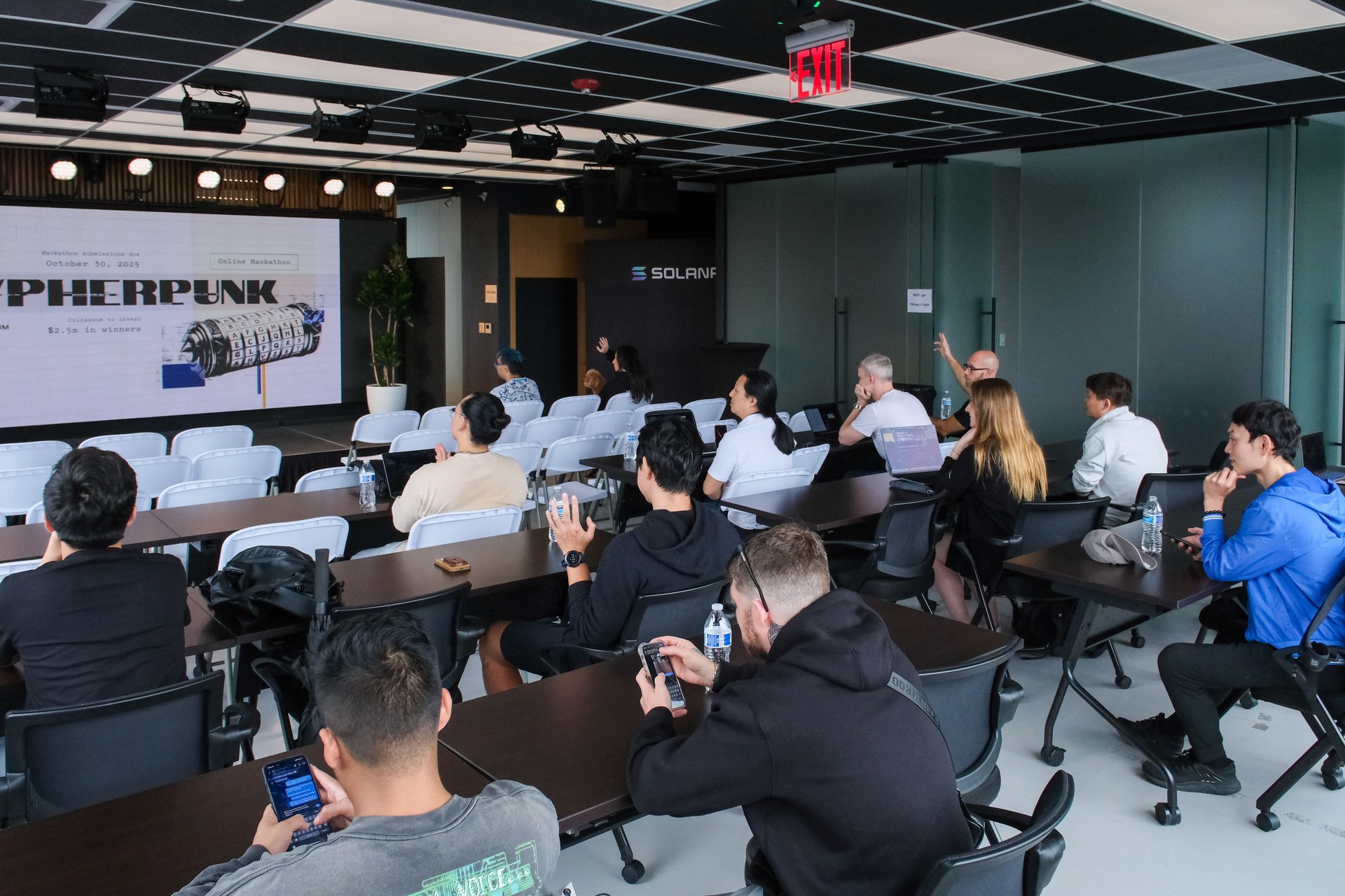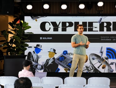 The Cypherpunk Hackathon was a private tech event hosted by Solana, bringing together founders, developers, and speakers for focused discussions, collaboration, and presentations.